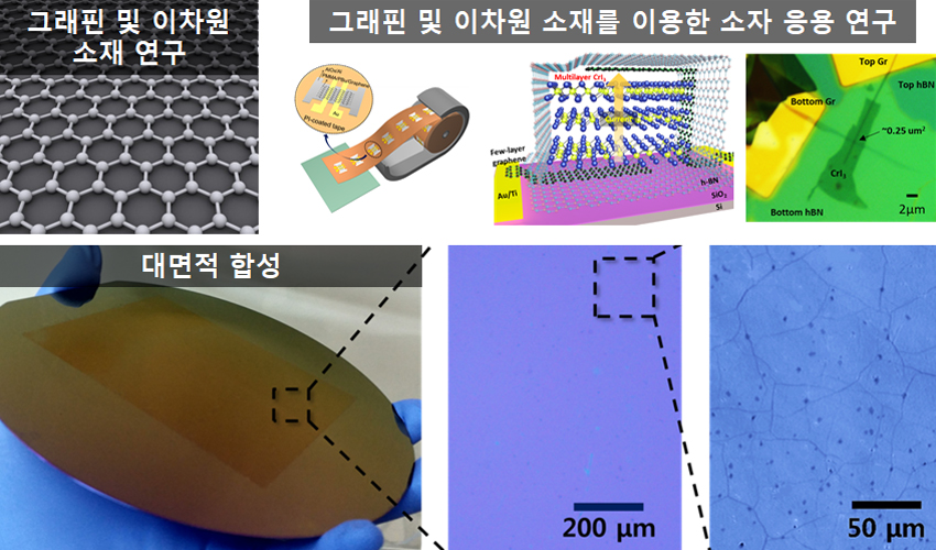 저차원 나노소재 및 반도체 소자 연구실은 그래핀을 포함한 다양한 이차원 소재의 고품질 대면적 합성과 이를 이용한 소자 응용에 대한 연구를 수행하고 있습니다.